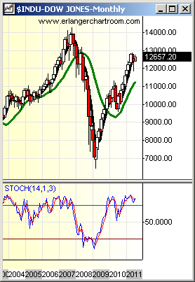 We show monthly charts of the Dow Industrials and Dow Transports, below. Note that the Transports have already made an all time high close. The Transports are our favorite indicator of economic strength so this is a big plus.